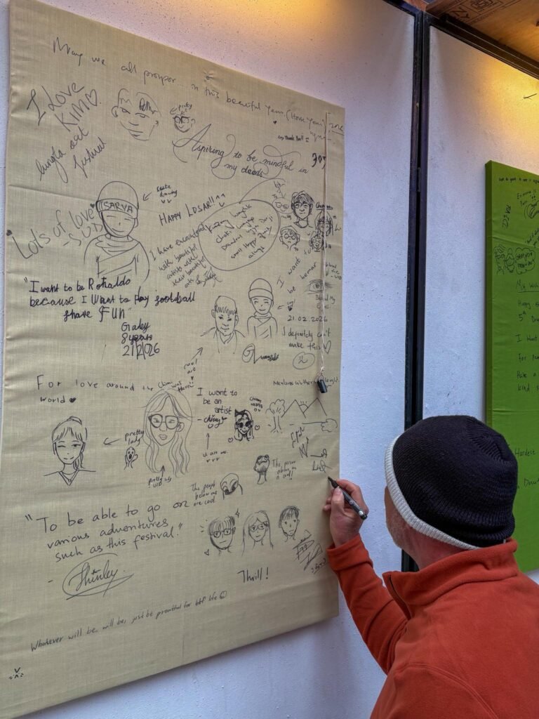 The festival features multiple engagement spaces designed to encourage participation and reflection. Some visitors paused at the entrance, looking at the lungta and the details of the installation. Others were drawn to the “Lungta Saa” (Lungta recitation) bus, immersing themselves in the experience of collective prayer. Many explored the installations, paintings, and interactive spaces that invited both admiration and active participation.
