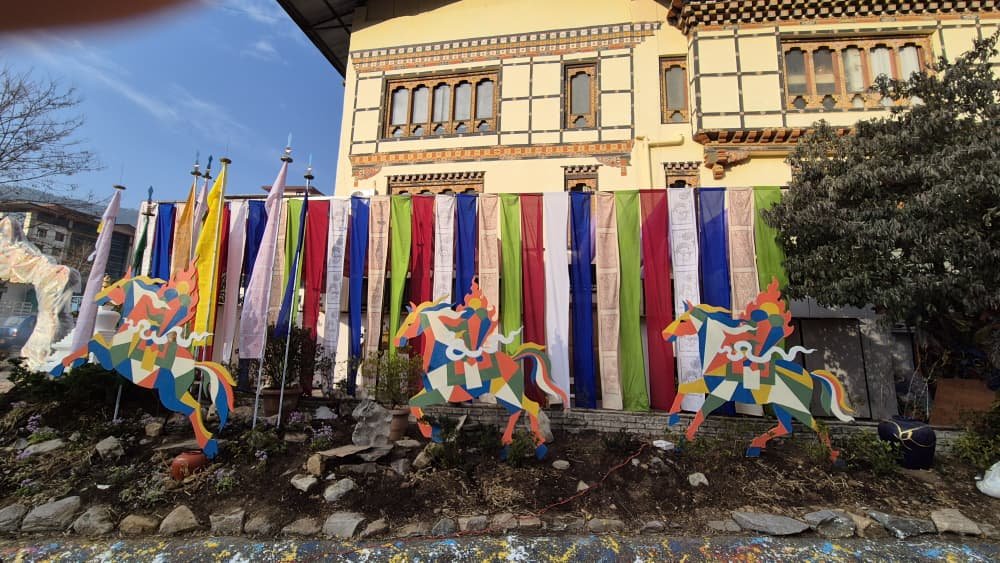 On 21st February at 6:00 AM, the sacred sounds of prayer marked the beginning of the Lungta Art Festival. Monks from Pangrizampa Monastery commenced the day with prayers, accompanied by the melodious sound of the of drilbu and drums. We joined the nation in offering our prayers for the long life of His Majesty The King.